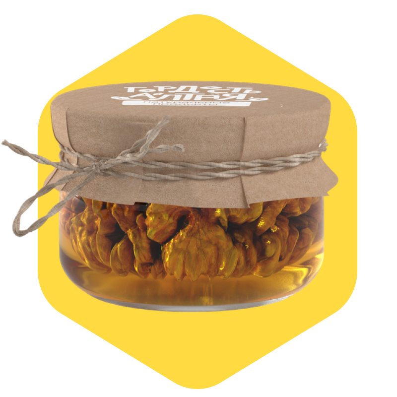 Грецкий орех в цветочном мёде — это классическое сочетание, в котором встречаются два сильных натуральных компонента: цветочный мёд и отборные ядра грецкого ореха. Оба ингредиента обладают ярко выраженными вкусовыми характеристиками и высокой пищевой ценностью. Грецкий орех — богатый источник Омега-3, магния и белка, что делает этот десерт полезным и сытным. Орехи остаются цельными, слегка размягчаются в мёде, но сохраняют приятный хруст. Вкус — глубокий, сбалансированный, с карамельно-ореховыми нотами. Подходит для повседневного употребления и как составляющая подарочных наборов.